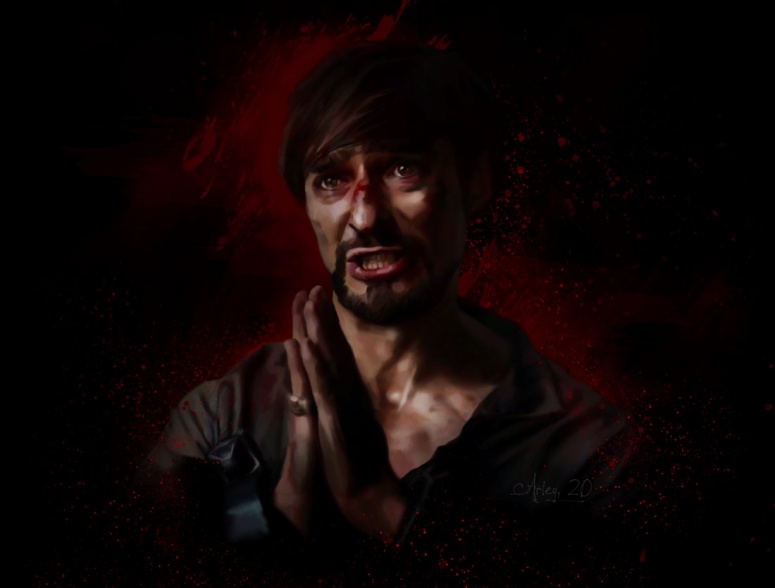 | Ну что тут скажеш... ну ведь он прекрасен, а от того что ты его нарисовала - стало только лучше! А петли не хватает. Такой момент хороший в сериале - так он талантливо развесил им лапшу на уши. | |